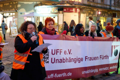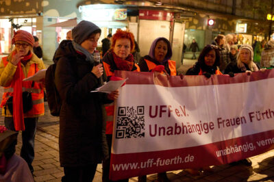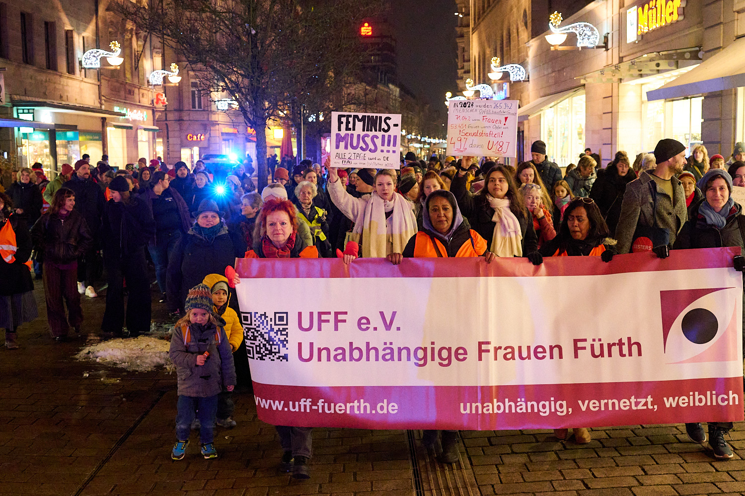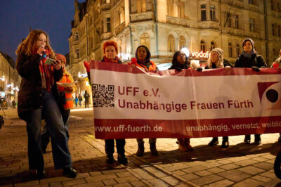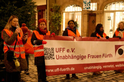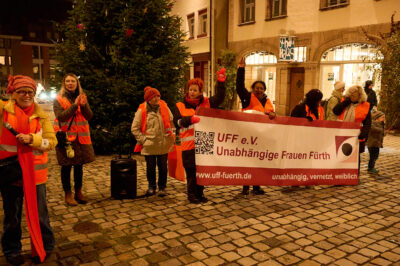 Zum internationalen Aktionstag gegen Gewalt an Frauen sind in Fürth wieder 200 Menschen auf die Straße gegangen. Die Unabhängigen Frauen Fürth (UFF) rund um Vorstandsmitglied Brigitte Stenzhorn haben diese Aktion organisiert, und ich habe mich wieder gerne daran beteiligt. Es ist eine parteiübergreifende, gemeinsame Aktion der Fürther Frauenverbände wie dem Multikulturellen Frauentreff, dem Zentrum gegen häusliche Gewalt, dem Frauenhaus, ver.di und dem Soroptimist Club Fürth. Gemeinsam senden wir damit eine klare Botschaft an die Betroffenen: Ihr seid nicht allein!